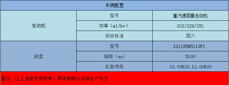 重汽德國(guó)曼發(fā)動(dòng)機(jī),HOWO變速箱,5-7T前橋,7-16T后橋